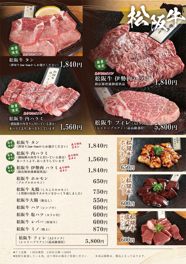 カウンター席、テーブル席がありカジュアルな雰囲気で松阪牛をお楽しみいただけます